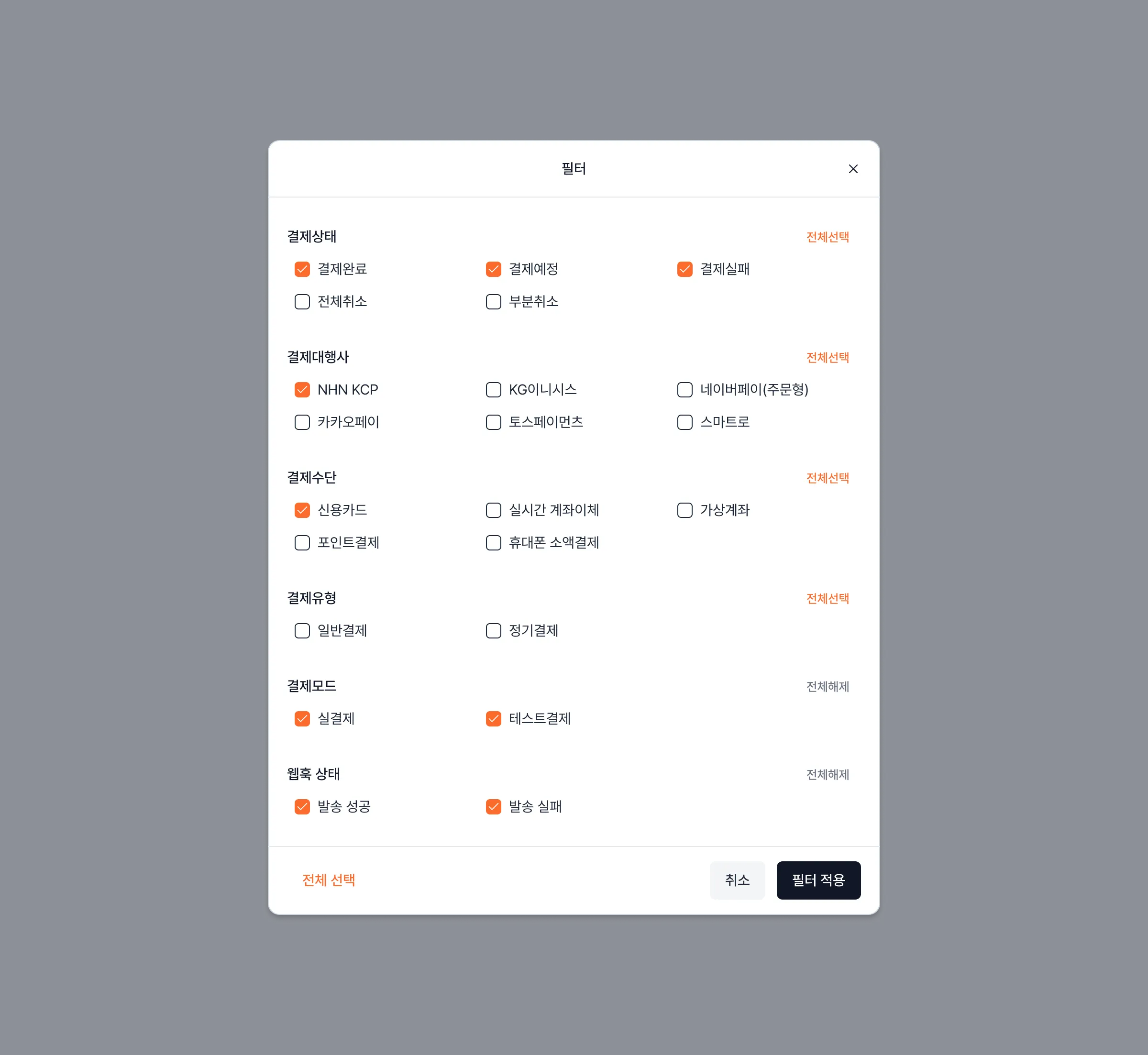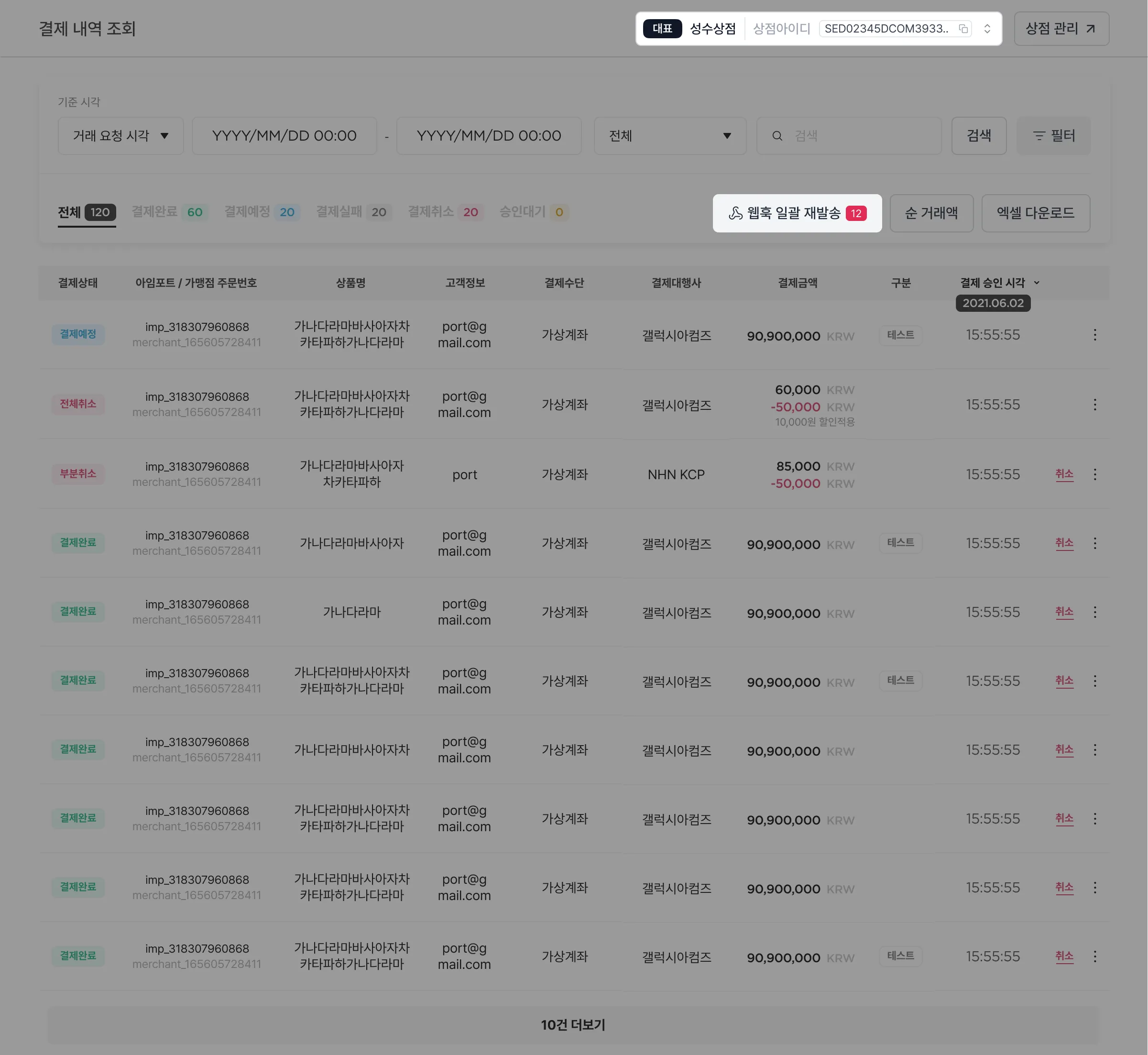✔️ 통합 결제 내역 - 일괄 웹훅 재전송